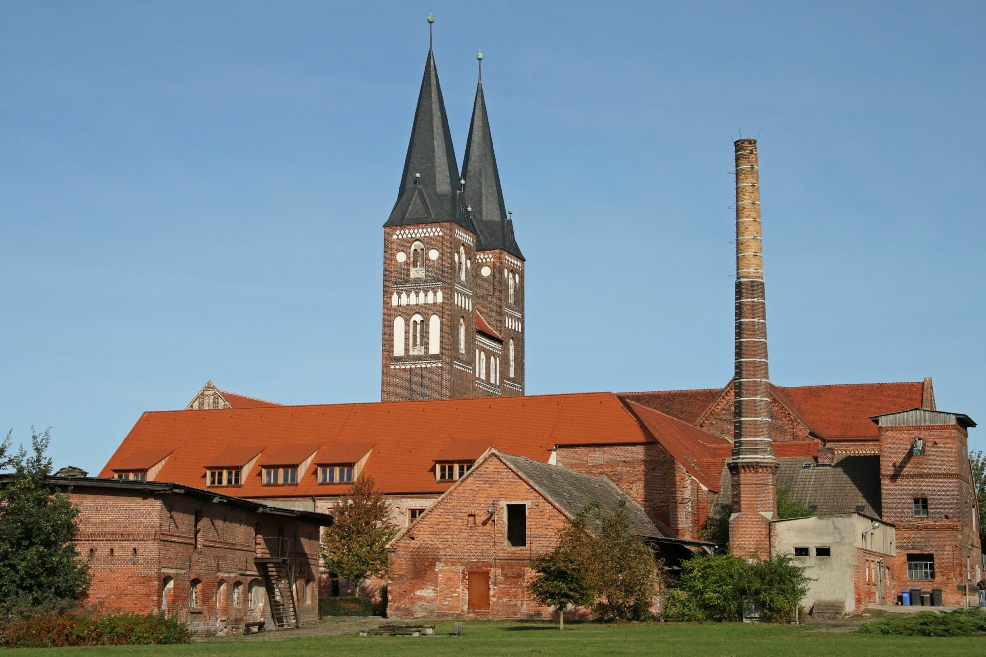 Nicht weit entfernt liegt das eindrucksvolle Kloster Jerichow, eines der ältesten Backsteinbauwerke Norddeutschlands, ein bedeutendes Zeugnis romanischer Architektur, idyllisch eingebettet in die Flusslandschaft.