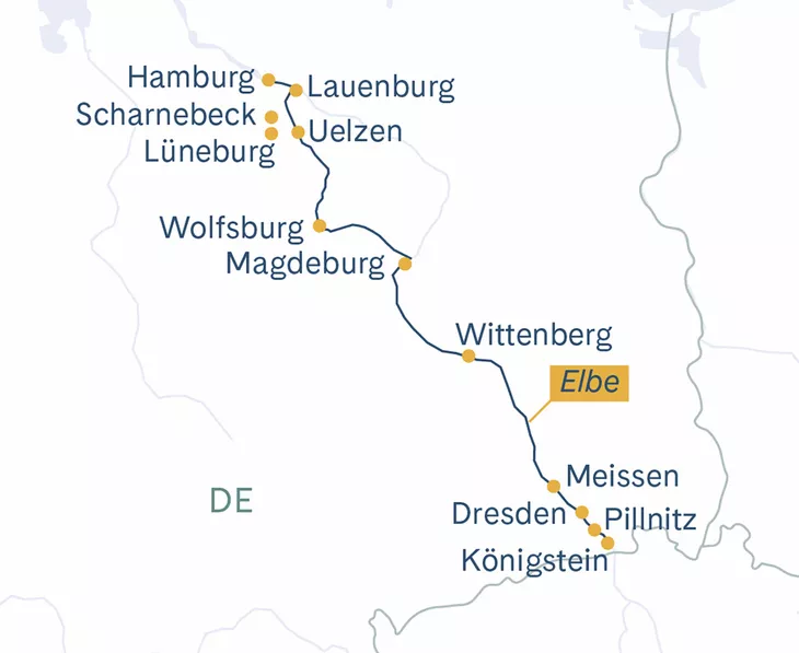 Individuelle Anreise nach Hamburg und Einschiffung. Nach dem Willkommens-Apéro heisst es «Leinen Los» und während des Abendessens geniessen Sie die stimmungsvolle Fahrt durch Hamburg nach Lauenburg, wo das Schiff über Nacht liegen bleibt.