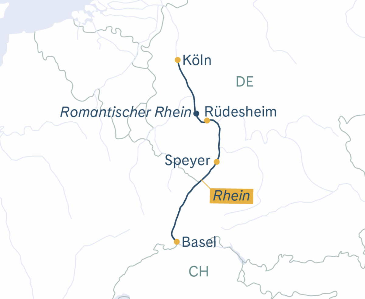 Individuelle Anreise nach Basel. Einschiffung ab 15:00 Uhr. Um 16:00 Uhr heisst es «Leinen los!».