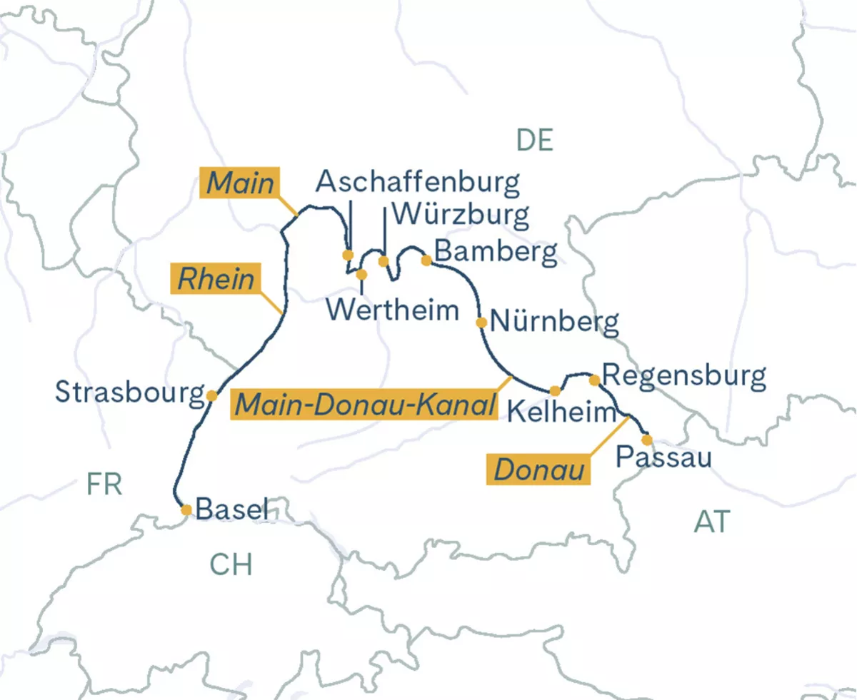 Geniessen Sie die entspannte Flussfahrt auf dem Main und lassen Sie die reizvolle Landschaft an sich vorbeiziehen. Nach der Ankunft am frühen Abend haben Sie Gelegenheit, Aschaffenburg individuell zu erkunden, etwa bei einem Spaziergang durch die Altstadt oder beim Besuch des imposanten Schlosses Johannisburg.