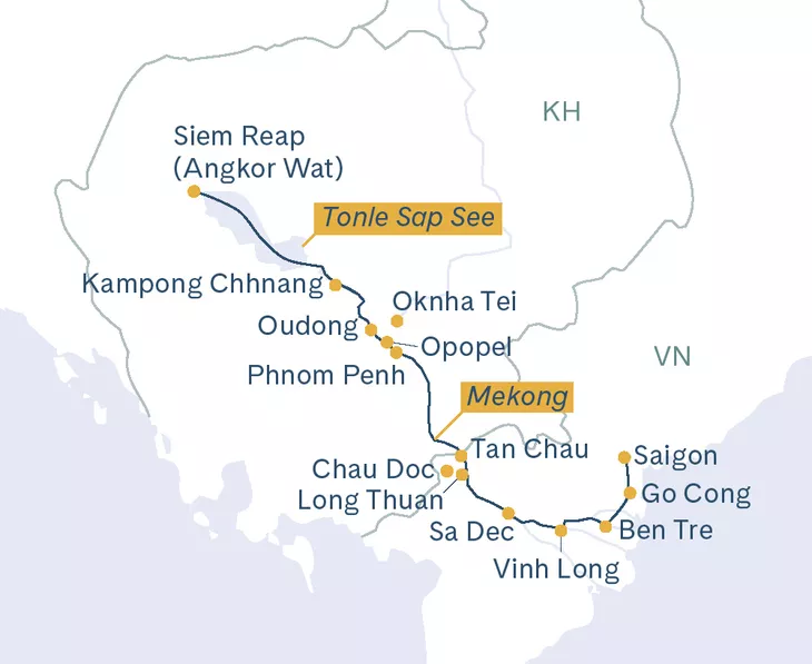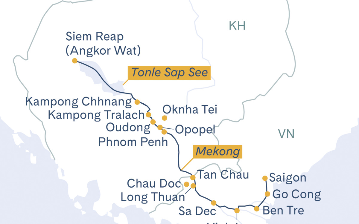 Indochina – ein Wort, das Sehnsüchte weckt. Erleben Sie das unbeschreibliche Indochina mit seinen verborgenen Schätzen und atemberaubenden Landschaften in Vietnam und Kambodscha: Das fruchtbare Mekong-Delta mit seinen unzähligen Flüssen und Kanälen sowie Kambodscha mit seinem faszinierenden Tempelkomplex von Angkor Wat. Die Ausflüge zu historischen Stätten, der unendliche Kulturreichtum und die ausgesprochene Freundlichkeit der Menschen, die Ihnen während der Reise begegnen werden, machen diese Flusskreuzfahrt zu einem einmaligen Erlebnis.
