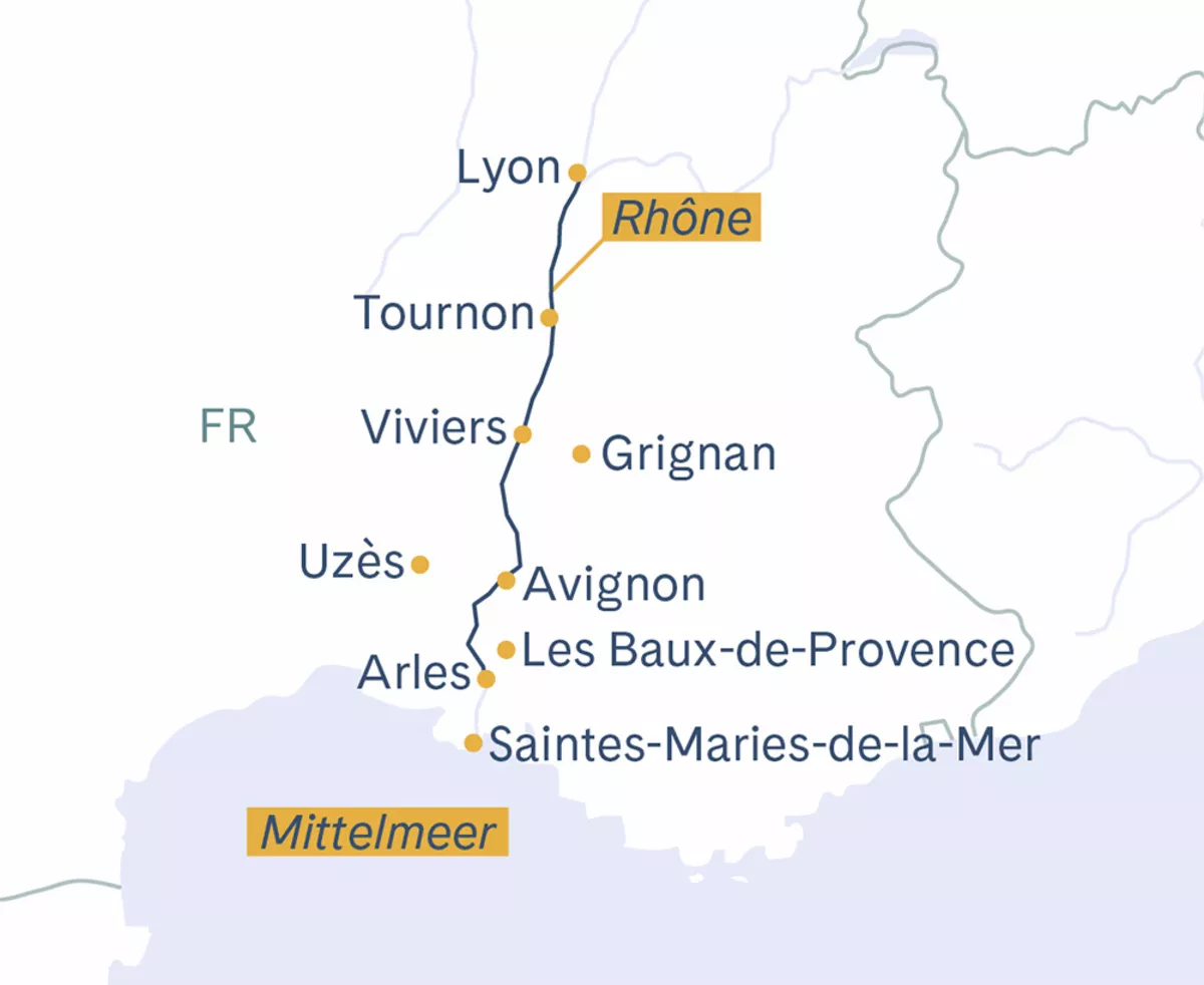 Individuelle Anreise nach Lyon. Nach der Einschiffung und dem Kabinenbezug heisst es um 18:00 Uhr «Leinen los!». Ihre Flussreise Rhône abwärts beginnt.