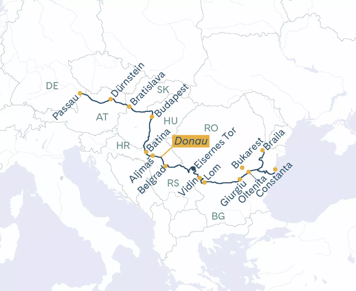 Geniessen Sie erholsame Stunden an Bord, während das Schiff durch den spektakulären Taldurchbruch der südlichen Karpaten und das imposante «Eiserne Tor» gleitet – eines der eindrucksvollsten Naturwunder entlang der Donau.