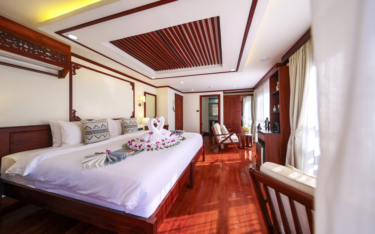 Das neue Juwel auf dem nördlichen Mekong in Laos geht in der zweiten Jahreshälfte 2025 auf Pionierfahrt. Die 10 Kabinen und 2 Suiten bieten Platz für maximal 24 Gäste. In allen Kabinen und Suiten geniessen Sie den Komfort eines privaten Balkons und die hervorragende Sicht aus bodentiefen Panoramafenstern. Das Schiff vereint edles Ambiente und Wohlfühl-Komfort mit dem charmanten laotischen Flair. Lassen Sie sich verwöhnen, geniessen Sie den frischen Stil und die komfortable Ausstattung des neuen Boutique-Schiffes und bereisen Sie den grossartigen Mekong-Fluss auf eine ganz neue, noch exklusivere Weise.