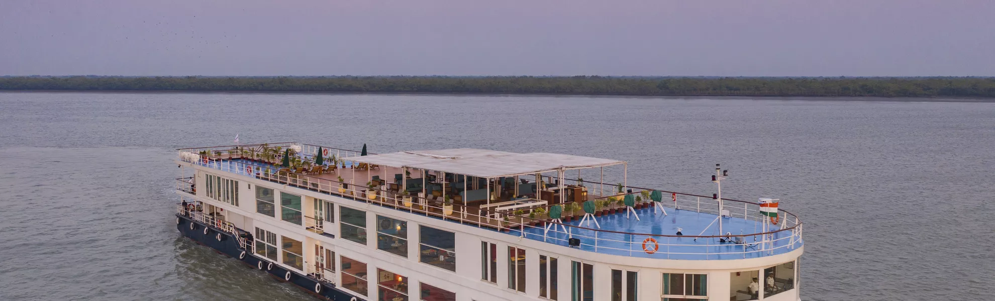 Auf dieser Ganges-Reise mit der RV Thurgau Ganga Vilas , erleben Sie Indien abseits der Touristenpfade. Reizvolle Uferlandschaften, beeindruckende Tempel und eine einmalige Gastfreundschaft erwarten Sie während der Reise auf einem der längsten Flüsse der Erde, oder einer Flussreise durch das UNESCO- Weltnaturerbe Sundarbans, den grössten Mangrovenwäldern der Erde.